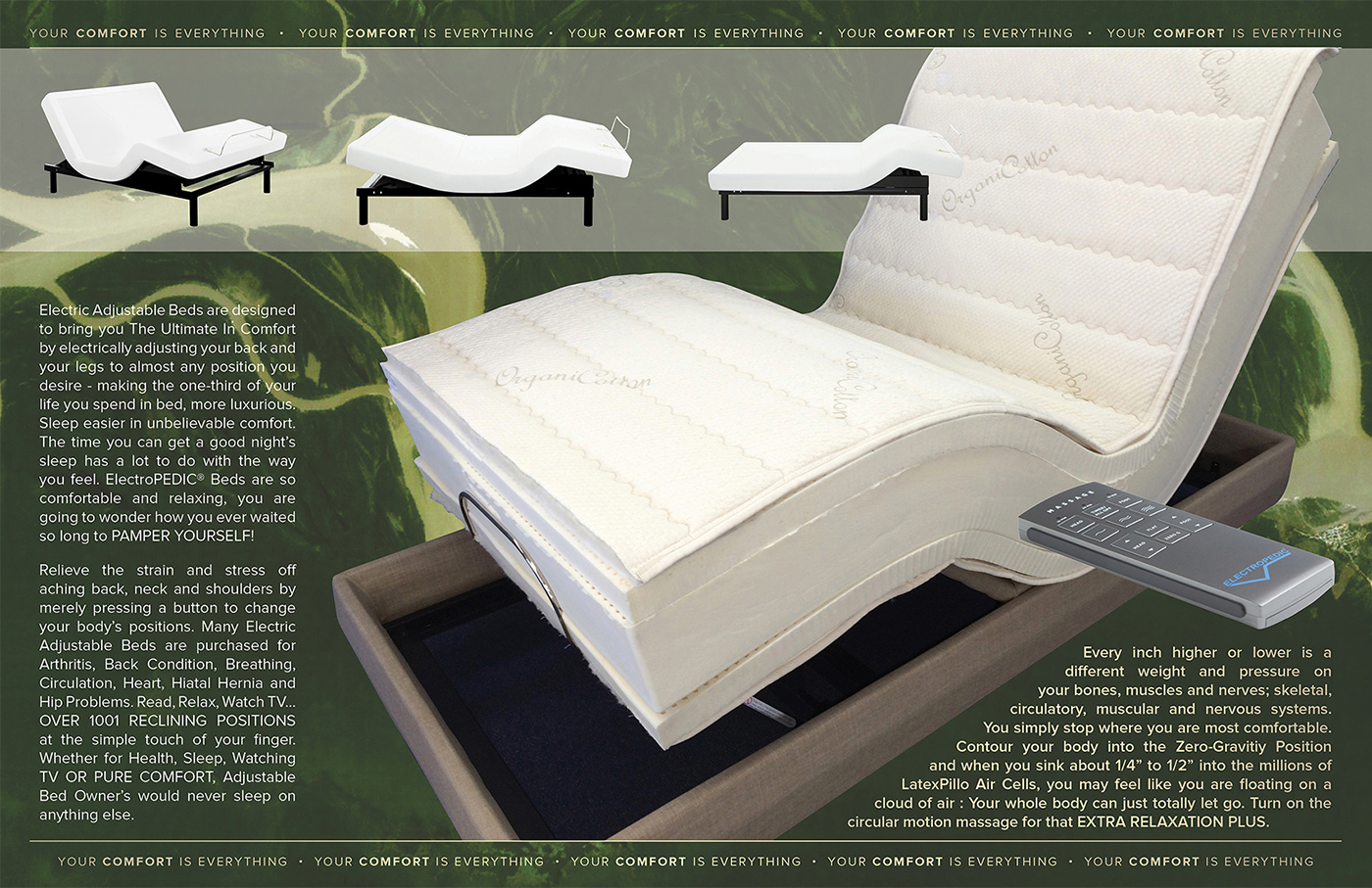 Probably the most comfortable piece of furniture in the World! Read, relax, watch tv, . . . over 1001 different positions at the simple touch of your finger. Whether for health, sleep, watching TV or PURE COMFORT, The Whole Natural Adjustable Bed Owner would never sleep on anything else!